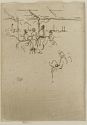 'Whistler, carrying the small plates about with him, sketched the subjects he found on copper as other artists sketch on paper. ... the whole set of ten [were made] during the Naval Review, with a plate at Tilbury, on his embarking, and another at Portsmouth on landing. The prints of this Series, as we know the exact space of time in which they were done, prove strikingly his wonderful power of giving a momentary impression in a few lines on a piece of copper, for they suggest, in extraordinary fashion, the picturesque aspect of the great naval spectacle.' 2